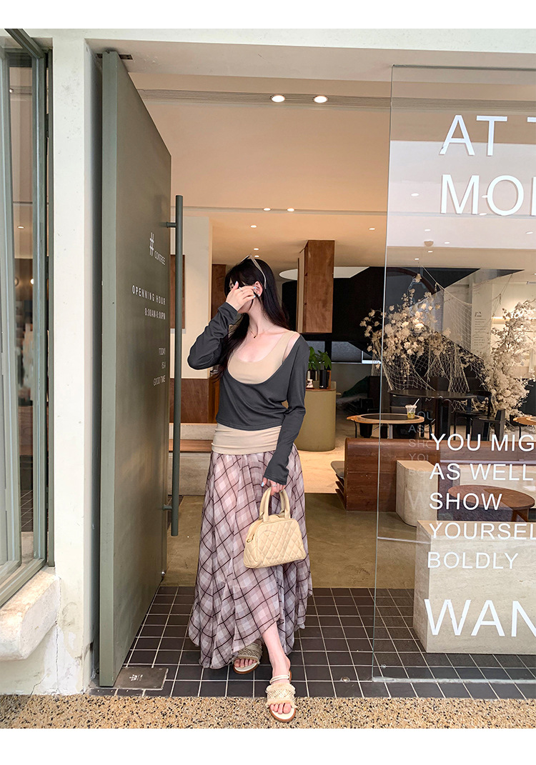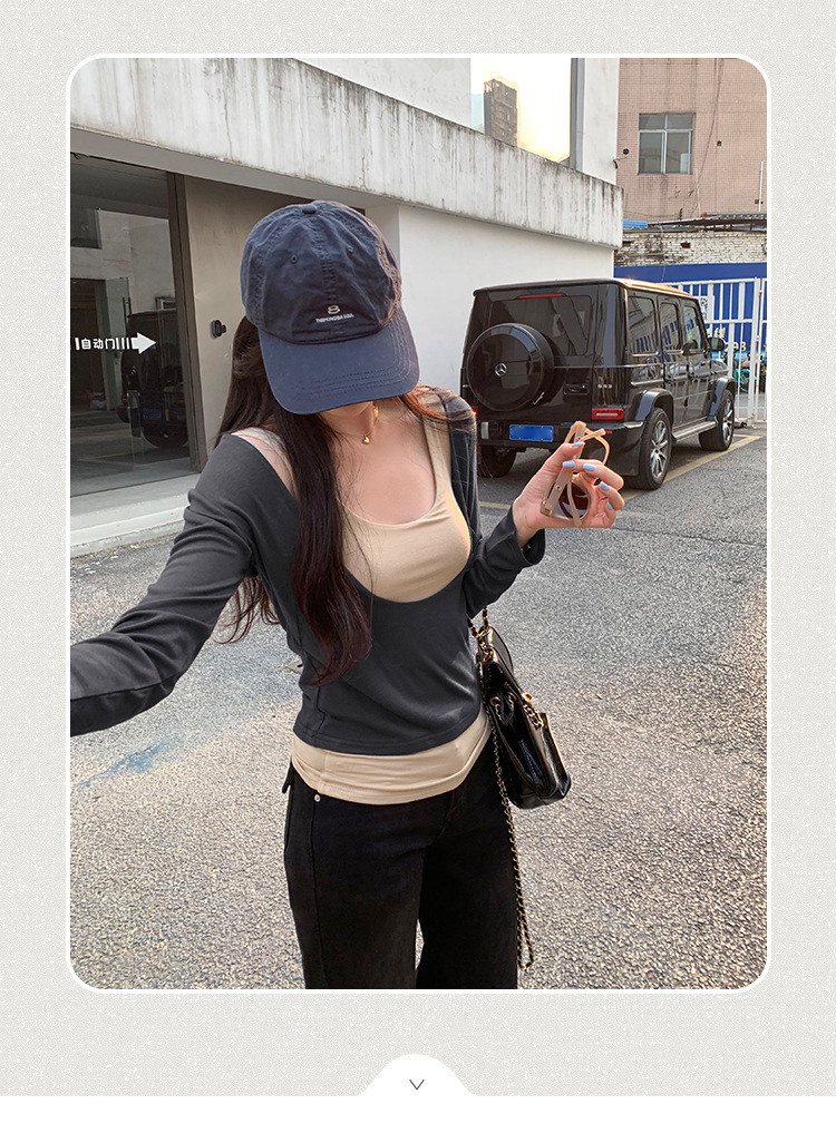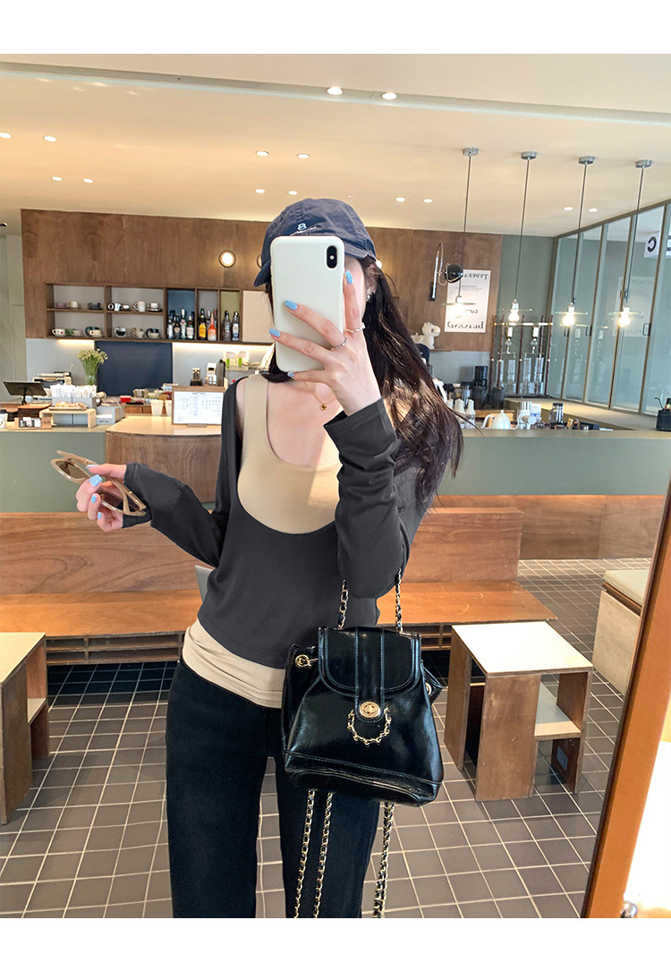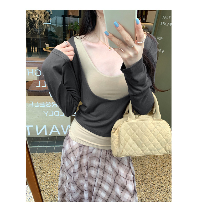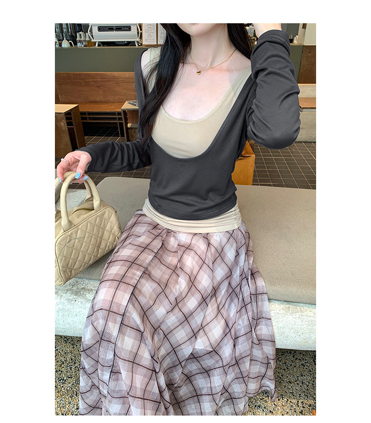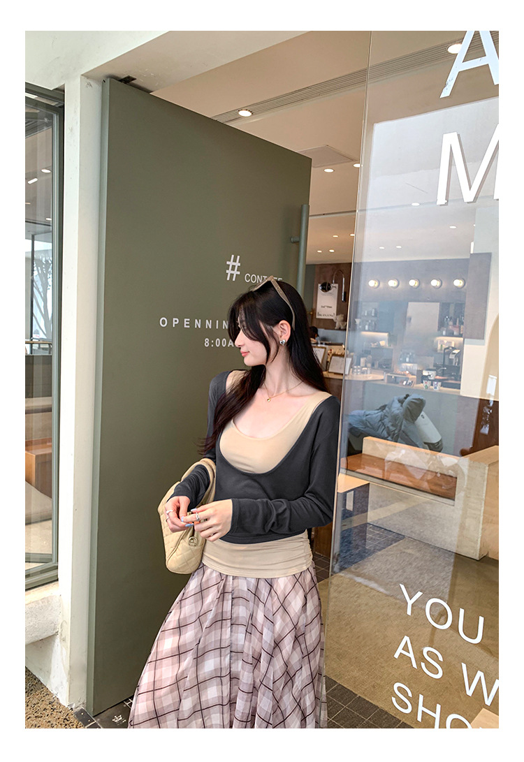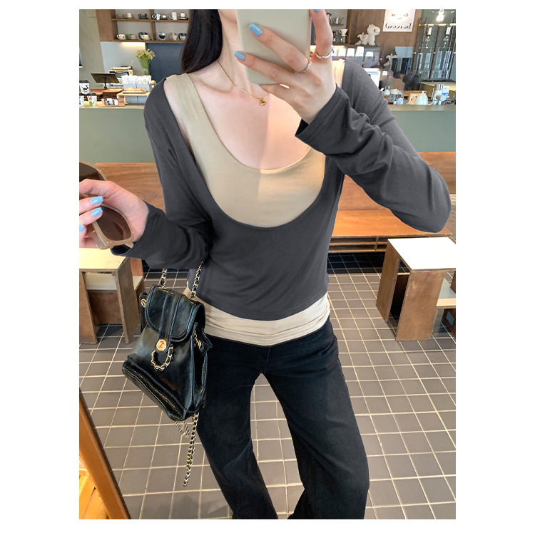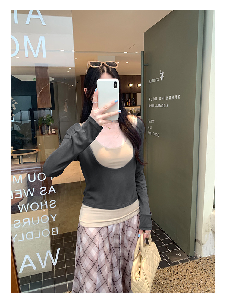 false Two-Piece Long Sleeve T-Shirt for Women
